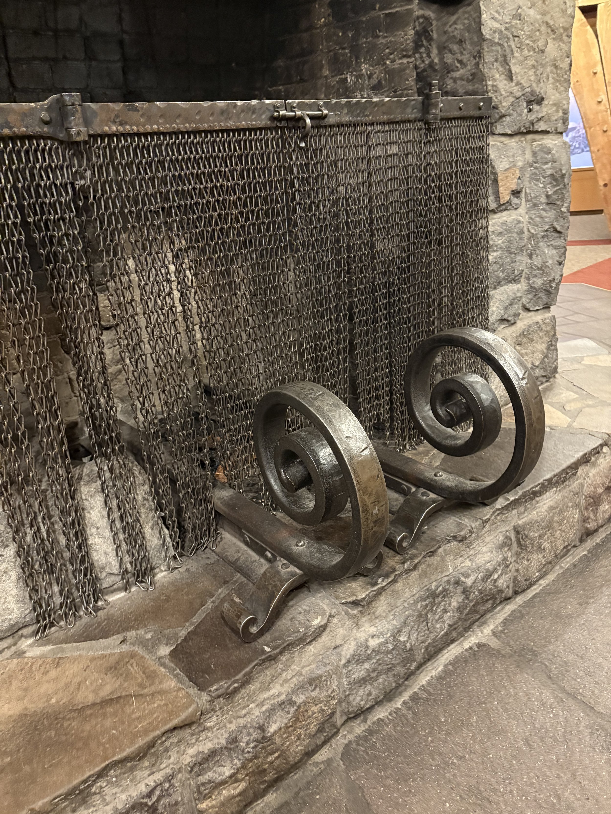 My jaw dropped upon entering the lobby. Had I just teleported to the twentieth century Swiss Alps? Built between 1936-38 as part of the Great Depression’s Works Progress Administration (WPA), every inch of this New Deal-era lodge showcases art and craftsmanship. Soaring, old-growth beams reach for the ceiling without the help of brackets or buckets – mortise and tenon construction at its finest. Long before the environmental movement, Timberline embraced repurposing materials. The fireplace’s spark arrestor? Snow-chains from trucks. Thick, curved supports for the grill? Railroad tracks. Bannisters? Telephone poles. You get the idea. Each piece of art has a QR code providing background information.